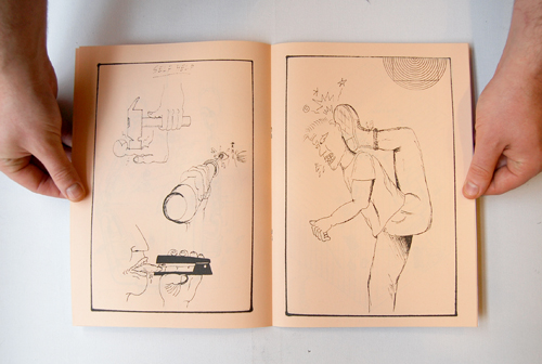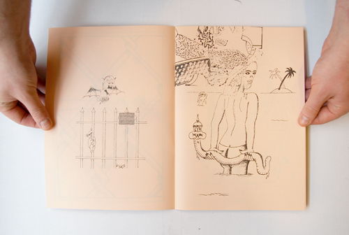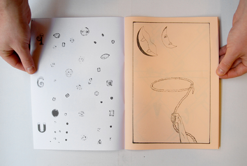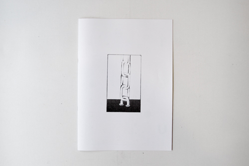 20cm x 28cm, 20 pages, saddle-stitched, black risograph printed throughout, bright white cover with peach coloured inner stock