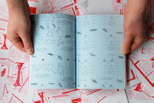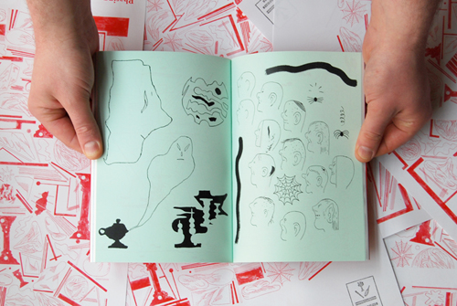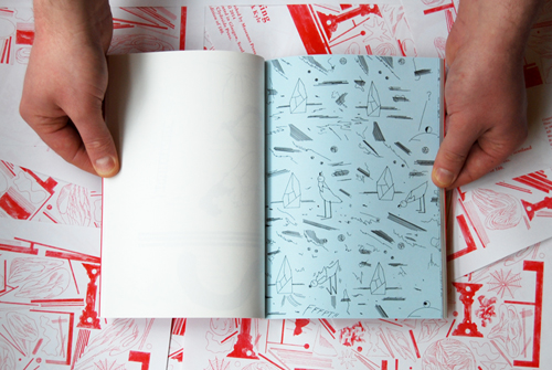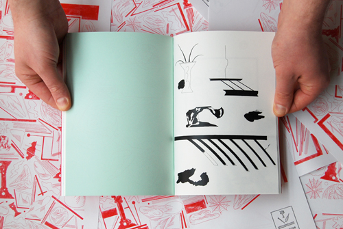 A5, 84 pages, black and white printing throughout, white, green and blue inner paper stocks, heavyweight cardstock cover, perfect bound. Come with single colour risograph poster. First edition of 100. Released MAY 2014.